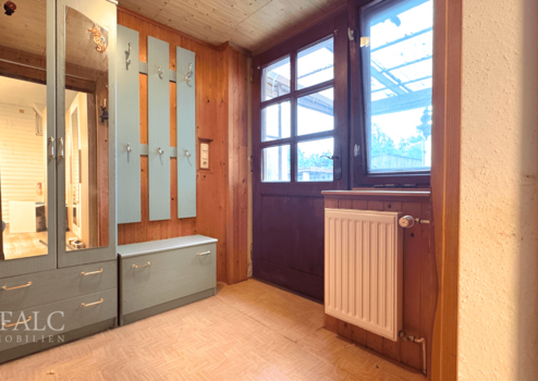 * zwei hintere Eingänge (einer mit Windfang), zusätzlicher Windfang am Hauseingang