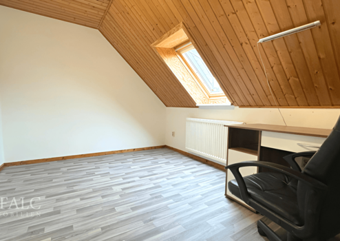 Das Dachgeschoss ist als Kaltdach ausgeführt, die oberste Geschossdecke wurde bereits gedämmt. Auch der wetterseitige Giebel erhielt eine Dämmung, sodass ein guter energetischer Grundzustand gegeben ist. Die Fenster stammen aus dem Jahr 2005, im gesamten Erdgeschoss wurden Rollläden installiert. Ein Teilkeller sorgt für zusätzliche Abstellmöglichkeiten, während der Dachboden weiteren Stauraum bereithält.