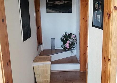 Über Teppen gelangt man zum Wohnungseigang, somit nicht barrierefrei