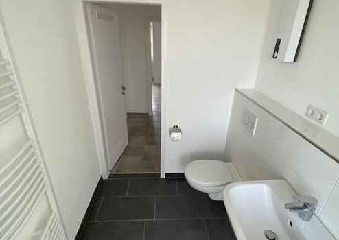 Das Tageslichtbad ist 2024 vollständig renoviert worden und erwartet Sie mit begehbarer Dusche, wandhängendem WC und Handtuchwärmekörper.