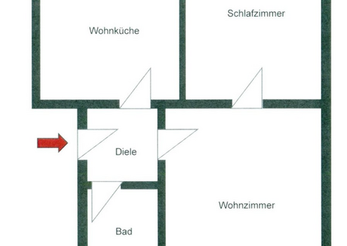 Die Wohnung erstreckt sich über 55 m² aufgeteilt auf Schlafzimmer, Wohnzimmer, Küche, Bad und Diele.