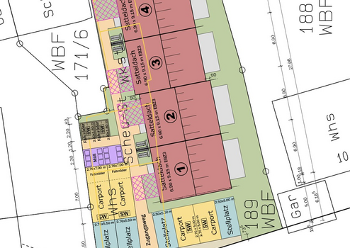 • 4 genehmigte Reihenhäuser