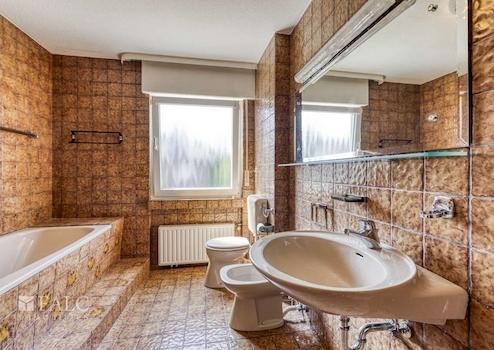 Das Haus ist voll unterkellert und bietet im Untergeschoss eine großzügige Waschküche, zwei weitere Kellerräume sowie den Heizungsraum. Eine große Garage gehört ebenfalls zum Objekt und bietet neben Platz für Fahrzeuge auch zusätzlichen Stauraum.