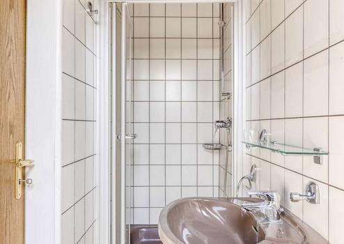 Im Obergeschoss befinden sich drei Schlafzimmer. Zwei dieser Zimmer wurden zu einem großen Raum zusammengelegt, können jedoch bei Bedarf durch das Ziehen einer Zwischenwand wieder getrennt werden. Das große Schlafzimmer bietet zudem Zugang zu einem Balkon mit schönem Blick in den Garten. Ebenfalls auf dieser Etage befindet sich ein geräumiges Badezimmer mit Badewanne, separater Dusche und Bidet.