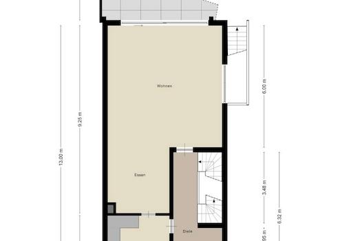Im Erdgeschoss empfängt Sie ein langer, einladender Flur, von dem aus Sie Zugang zum Gäste-WC, zur Küche sowie zum großzügigen Wohn- und Essbereich haben. Die Küche verfügt ebenfalls über einen seperaten Zugang direkt in den Wohnbereich.