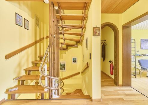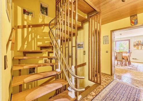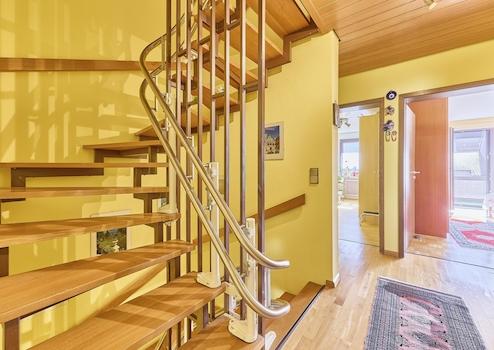 Ein Highlight sind die insgesamt vier Badezimmer mit Dusche, verteilt auf alle Geschosse – ideal für große Familien. Durch den abbaubaren Treppenlift über alle vier Etage bietet sich aber auch die Nutzung als Mehrgenerationenhaushalt an.
