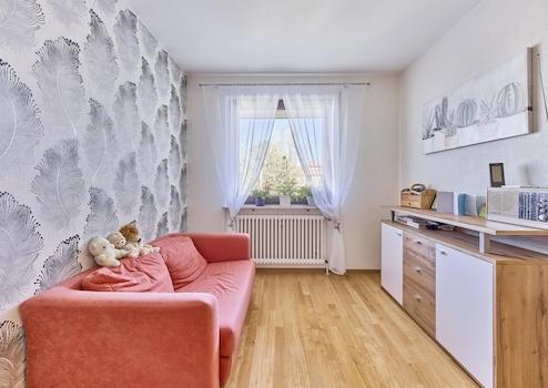 Zwei Gartenbereiche, eine Terrasse mit Terrassenkeller, eine Garage mit elektrischem Tor sowie zwei zusätzliche Stellplätze runden dieses familienfreundliche Angebot ab.