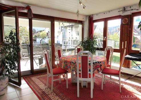 Das Haus wurde 1990 in großen Teilen modernisiert. Der Anbau, ebenfalls von 1990, erweitert den Wohnraum um eine wunderschöne Terrasse im Erdgeschoss und einen verglasten Balkon im Obergeschoss, beide mit herrlichem Blick ins Grüne!