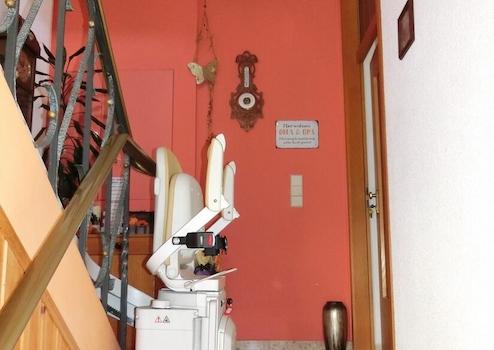 Ideal auch für ältere Bewohner: Ein vorhandener Treppenlift sorgt für komfortables Wohnen bis ins Obergeschoss.