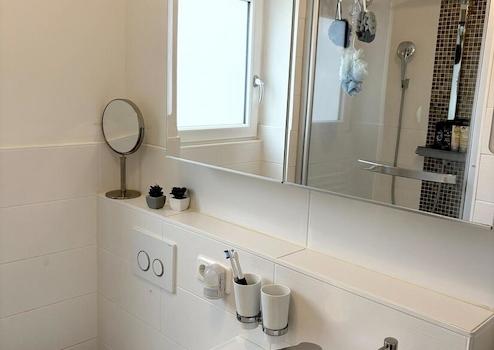 Die Wohnung bietet ein modernes Badezimmer, zwei sonnige Terrassen und einen schönen Gartenbereich, perfekt für Familien oder Paare, die Wert auf gemütliche Außenbereiche legen. Für Ihr Fahrzeug stehen vier Stellplätze zur Verfügung.