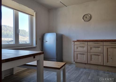 Das Herz dieser Immobilie ist eindeutig die Küche. Mit Platz für einen Essbereich, ist dieser Ort zum Zusammensein geschaffen. Echtholz Möbel, Marke Eigenbau mit allen notwendigen Elektrogeräten und dem Holzofen, schaffen Atmosphäre und Gemütlichkeit.