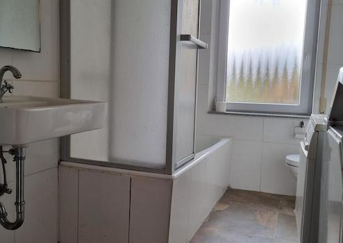 * Bad mit Wanne, Waschbecken, WC und Anschlüssen für