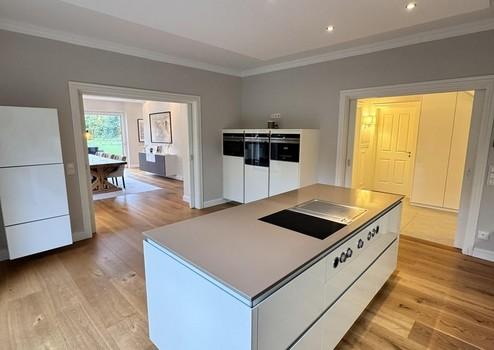 •Küche: Offenes Konzept, beidseitig per Schiebetüren abtrennbar; drei Terrassenelemente. Hochwertige Einbaugeräte, Kochfeld, Teppanyaki, BORA-Dunstabzug. Double-Door-Kühlschrank mit Eiswürfel-/Crushed-Ice-Funktion.