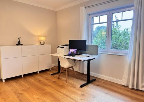 •Böden & Raumgefühl: Wohn-/Essbereich und Arbeitszimmer mit breiten Eichenechtholz-Dielen; übrige EG-Flächen in 60×60 cm Fliesen (Betonoptik). Deckenhöhe 2,8m.
