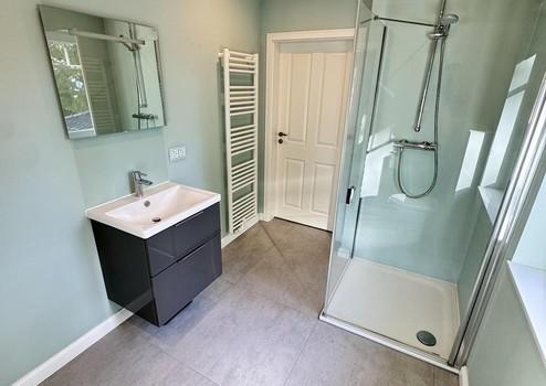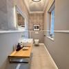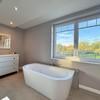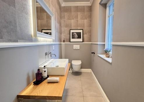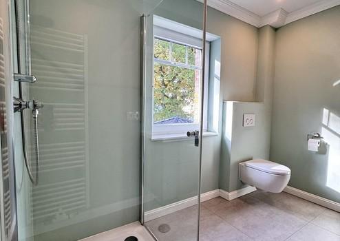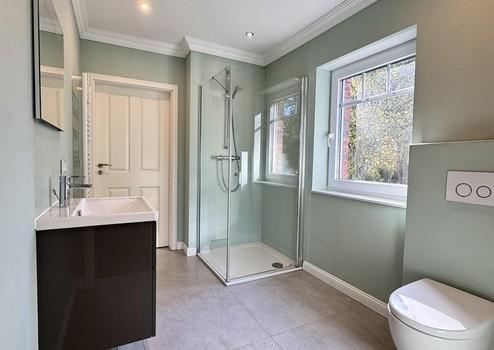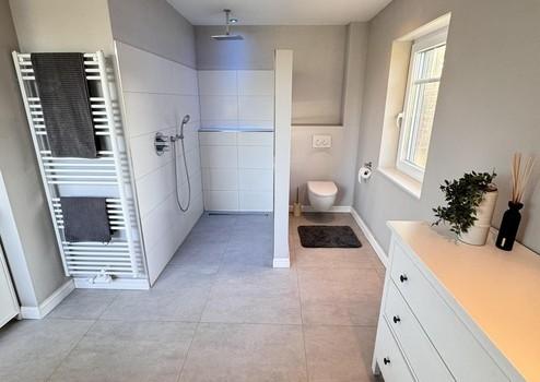 •Badkultur: Kinderbad als Duschbad; Master-Bad als Vollbad mit großem Waschtisch, freistehender Wanne und sehr großzügiger, bodengleicher Regendusche. Sauna-Vorbereitung/Anschluss vorhanden.