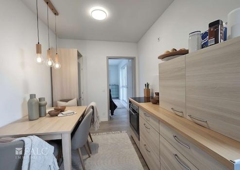 Beim Betreten dieser modernen Neubauwohnung aus dem Jahr 2025, welche sich auf einer Wohnfläche von ca. 59,21 m² erstreckt, werden Sie von einem hellen und einladenden Eingangsbereich empfangen. Von hier aus gelangen Sie direkt in das großzügige Wohn- und Esszimmer, das durch seine offene Gestaltung und die großen Fensterfronten besticht. Diese sorgen für eine angenehme Lichtdurchflutung und bieten einen direkten Zugang zur Terrasse und zum eigenen Garten, welche/r viel Platz für Freizeitaktivitäten bietet und sich ideal für entspannte Stunden im Freien eignet.