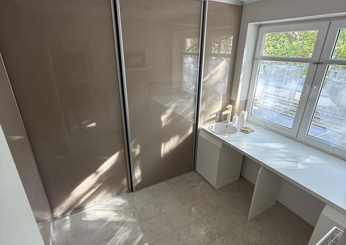Im Schlafzimmer und im Hauswirtschaftsraum sind hochwertige Einbauschränke mit viel Stauraum verbaut.