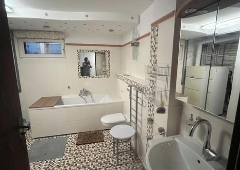 Es befindet sich ein Badezimmer mit Dusche, Badewanne (Wasser-Sprudel möglich),