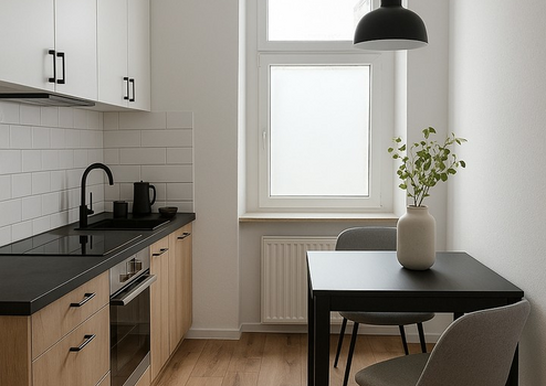 Achtung: Wohnung ohne Mobiliar - Fotos mit Mobiliar sind KI-generiert und dienen als Einrichtungsbeispiel / Einbauküche ist aber nach Absprache möglich