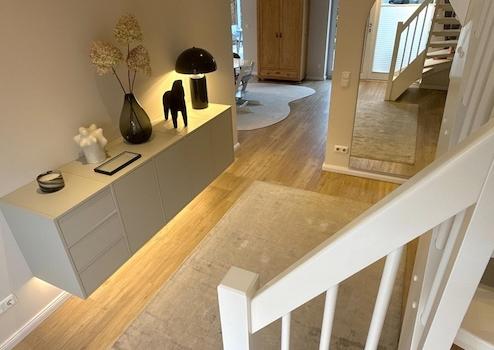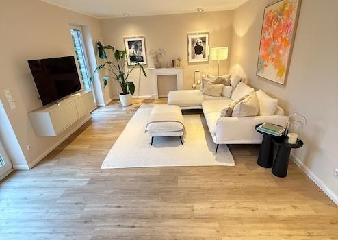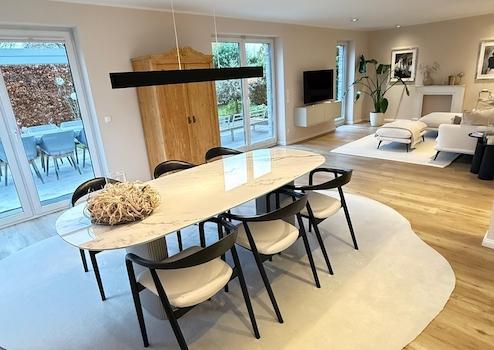 erstreckt. Alle Räume im Erdgeschoss sind mit hochwertigen Designböden der Firma