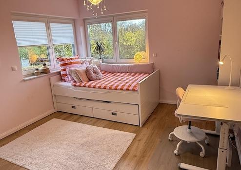 Im Obergeschoss befinden sich drei Schlafräume, eine Ankleide sowie das Masterbad. Das