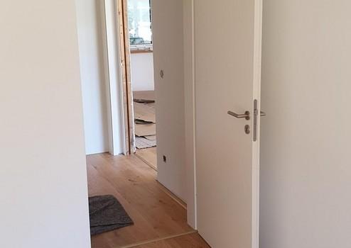 - Böden: Echtholzparkett in Wohnräumen, große Fliesen in Bädern