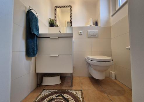 Das Haus verfügt über 3 Bäder und Parkettboden in allen Wohn-/Schlafräumen. Die Schlafräume sind klimatisiert und alle Räume (inkl. Keller) verfügen über eine zentrale Belüftung.