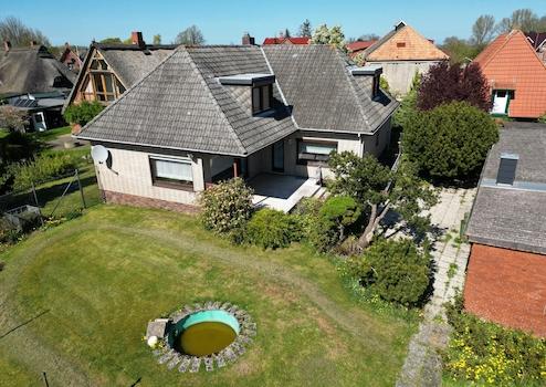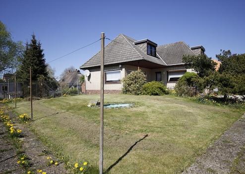 Ostseenahes Ein- bis Zweifamilienhaus mit 212 m² Wohnfläche, großem 1.347 m² Grundstück und vier Garagen.