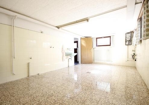 Der Kellerbereich ist bis auf einen Raum beheizt und kann vielseitig genutzt werden. Von den insgesamt vier Garagen ist eine aktuell vermietet, die übrigen stehen frei zur Nutzung und bieten zusätzliches Potenzial für Fahrzeuge oder Stauraum.