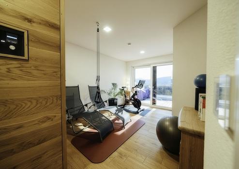 Arbeitszimmer, Fitness- und Saunaraum, Schlafzimmer, Ankleidezimmer, Luxusbad (19,49 m²). Deckenheizung/-kühlung für ganzjährige Wohlfühltemperatur.