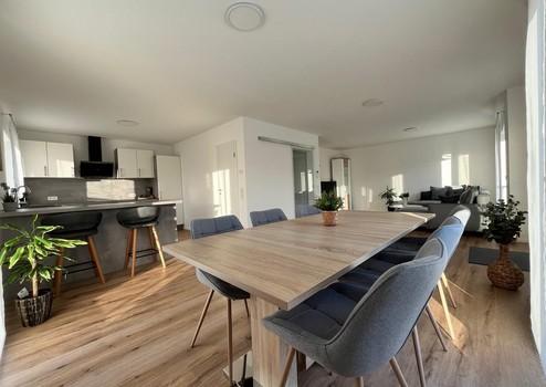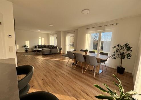 Großzügiger, offener Wohn-/Essbereich mit Zugang zur Terrasse mit unverbaubarem Blick