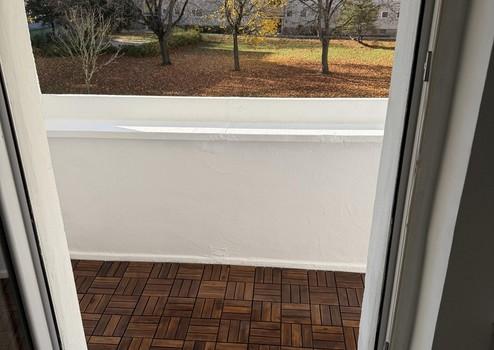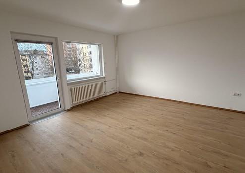 Das großzügige Wohnzimmer ist ein Highlight der Wohnung, denn von hier aus gelangen Sie auf den westlich (Nachmittagssonne) ausgerichteten Balkon. Genießen Sie die vielen Sonnenstunden und den schönen Ausblick in den grünen, gepflegten Innenhof – ein perfekter Ort zum Entspannen und Erholen.