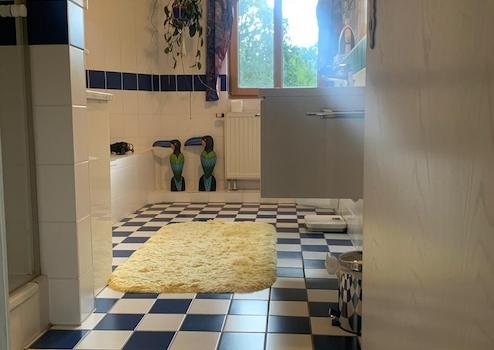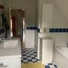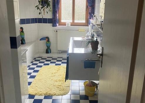 Badezimmer mit Wanne, Dusche, Waschbecken und WC inkl. Badmöbel