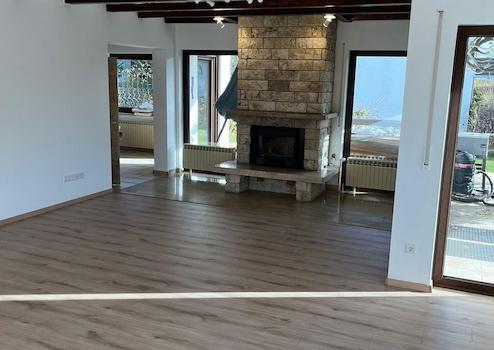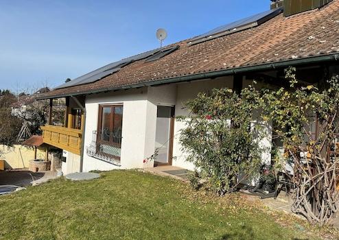 Neu renoviertes Bad, großes Wohnzimmer, großer Garten mit Terrasse und kleinem Teich.