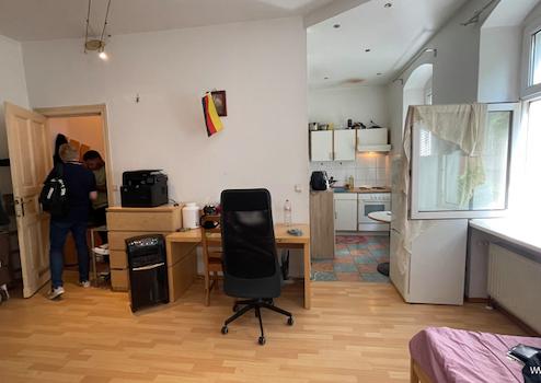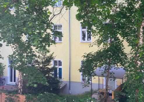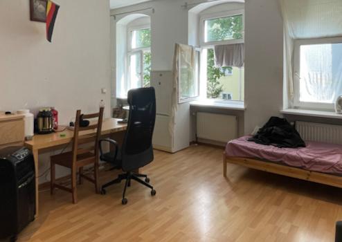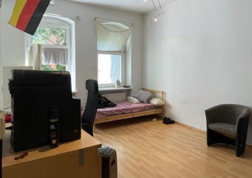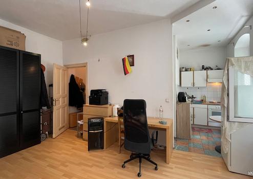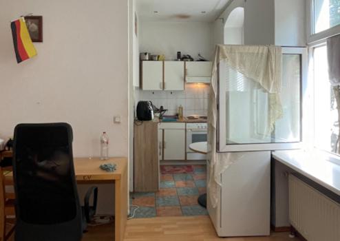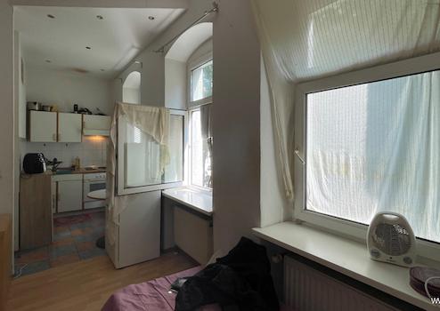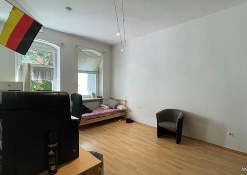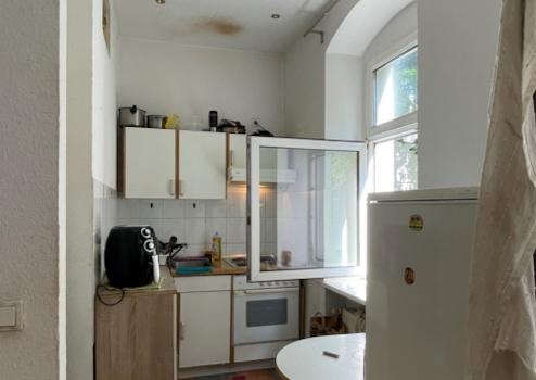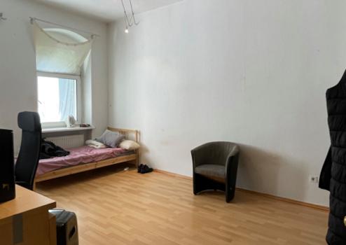 Die Wohnung befindet sich im 1. Obergeschoss des Vorderhauses und verfügt über ca. 31 m² Wohnfläche. Der Wohnraum ist großzügig geschnitten, verfügt über hohe Altbaudecken und große Rundbogenfenster, die viel Tageslicht in die Wohnung lassen. Dadurch entsteht ein helles und freundliches Wohnambiente, das den typischen Altbaucharme widerspiegelt.