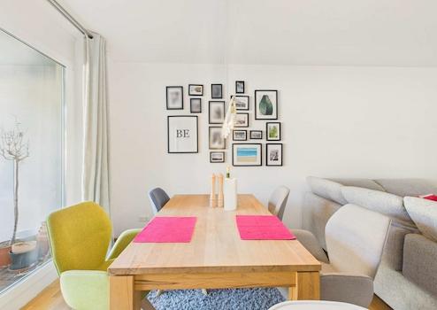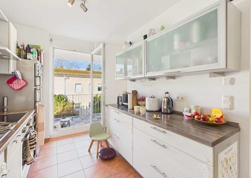 Der Wohn- und Essbereich überzeugt durch seine offene und klar gegliederte Raumaufteilung. Die Küche ist zum Essbereich durch eine kurze Wand geschickt abgesetzt und bietet viel Platz zum Kochen und Genießen. Sowohl vom Wohnzimmer als auch von der Küche aus gelangen Sie auf den sonnigen Balkon mit West-Ausrichtung. Ein Kellerabteil, ein Aufzug im Haus sowie ein eigener Tiefgaragen-Einzelstellplatz runden dieses attraktive Angebot ab.