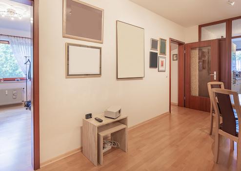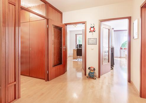 Sie betreten die Wohnung über einen Windfang, wo sich eine praktischer Garderobeneinbauschrank befindet und gelangen sodann in die besonders einladende, großzügige Eingangsdiele. Hier können Sie problemlos einen Esstisch unterbringen und gelangen in alle Räume.