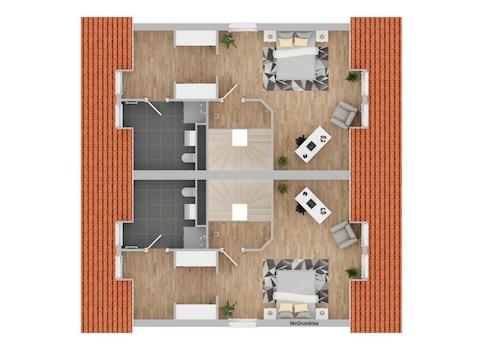 •Obergeschoss: Drei Kinderzimmer sowie ein Familienbad
