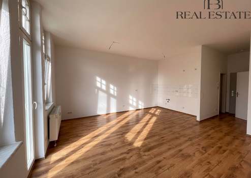 Willkommen in Ihrem neuen Zuhause im Herzen der Stadt! Diese moderne Einzimmerwohnung befindet sich im 2. Obergeschoss und bietet Ihnen eine gemütliche Fläche von 47,77 m² zum Leben und Entspannen. Beim Betreten der Wohnung werden Sie von einem offenen Raum empfangen, der als Wohn-, Ess- und Schlafbereich fungiert und mit stilvollem Laminatboden ausgestattet ist, der einladend und leicht zu pflegen ist.