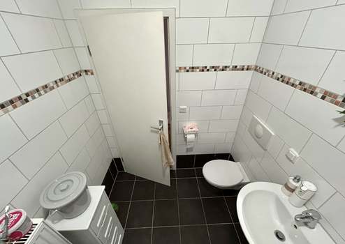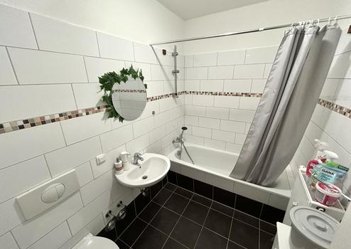 Das moderne Badezimmer verfügt über eine komfortable Badewanne, ideal für entspannende Bäder nach einem langen Tag. Ein Abstellraum mit Waschmaschinenanschluss bietet Ihnen praktischen Stauraum und die Möglichkeit, Ihre Wäsche bequem zu erledigen, ohne Platz in der Hauptwohnfläche einzunehmen.