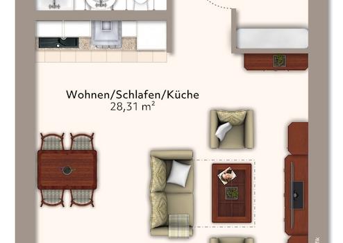 - ca. 47,77 m² große 1-Raum-Wohnung