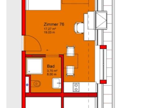 + wertige Möblierung: - Einbauküche - Schreibtisch + Stuhl - Tisch + Stühle - Kleiderschrank - Schlafsofa (90 cm) - stylisches Duschbad + leichte Dachschrägen + Gemeinschaftsflächen + Fahrradplatz + Waschraum (gg.Gebühr)