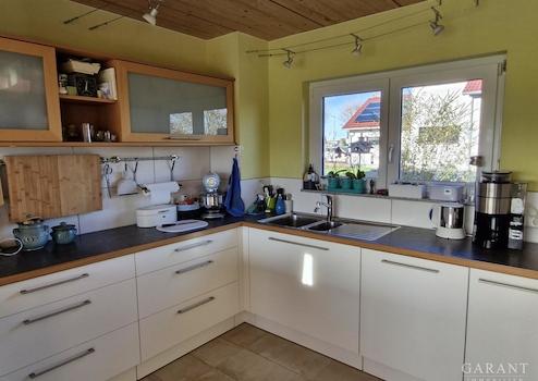 - ein großzügiger Wohn-/Essbereich mit offener Küche (individuelle Schreiner-Fertigung)