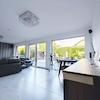 Offener Wohn-, Ess- und Kochbereich mit fließenden Übergängen
