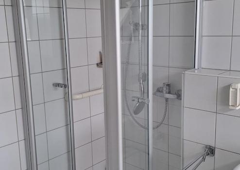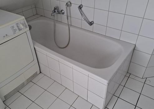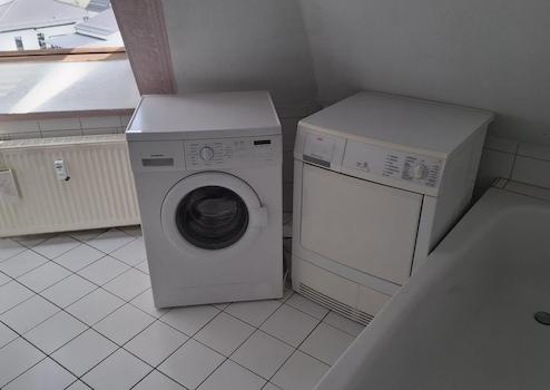 Das Vollbad verfügt über ausreichenden Stellplatz und Anschluss für die bereits vorhandene Waschmaschine und Wäschetrockner.