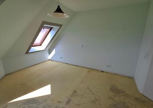 Wohn- und Esszimmerbereich sind mit einem hochwertigen Parkett ausgestattet. welches bisher noch nicht abgeschliffen bzw. versiegelt wurde. In diesem Bereich gibt es 3 bodentiefe Doppelflügel-Fenster, die jeweils mit Jalousien zur Beschattung ausgestattet sind. Weiterhin verfügt die Wohnung über 4 Dachfenster, so dass die ETW sehr hell wirkt.