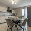 Sie betreten die schicke, renovierte Wohnung und gelangen von der geräumigen Diele zur linken Seite in das große Schlafzimmer, das Duschbad und die Wohnküche mit dem Ausgang zu einem der beiden Balkone mit schönem Blick über die Stadt.