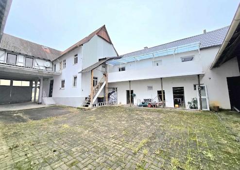 Diese Hofreite besteht aus mehreren Gebäudeteilen. Das vordere historische Fachwerkhaus wurde bereits im frühen 19.JHD erbaut. Das genaue Baujahr ist nicht bekannt. Die Immobilie befindet sich auf einem großzügigen 905 m² großen Grundstück und erstreckt sich über zwei Etagen. Mit einer Wohnfläche von stattlichen 388 m² bietet dieses Anwesen aktuell insgesamt 16,5 Zimmer und 5 Badezimmer. Die Gebäude bestehen aus 4 Wohneinheiten und verfügen über eine großzügige Terrasse, einen Balkon mit einer Fläche von 15,47 m² und einen Garten mit 150 m². Zum Anwesen gehören auch 7 Parkplätze und mehrere Keller mit einer Fläche von insgesamt 45,1 m². Die Dachböden und sich auf dem Grundstück noch zusätzlich befindende Scheune dürften zudem noch ausbaufähig sein.