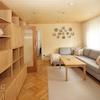 Wohn-Schlafbereich: Boden mit Parkettboden, teilweise Fachwerk sichtbar.