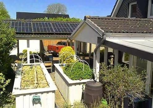 Auf den großen Hochbeeten kann Gemüse geerntet werden, die durch eine Bewässerungsanlage feucht gehalten werden. Unter einem Hochbeet befinden sich 3.000 Liter Wassertanks, neben der bestehenden Zisterne mit 5.000 Litern sowie zusätzlichem Brunnen.
